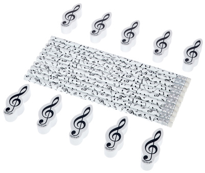 De agifty Pencil And Eraser Set of 10 is een set van 10 witte potloden met muzieknoten opdruk en 10 witte gummen met vioolsleutel. Perfect voor muziekliefhebbers.
