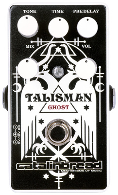 De Catalinbread Talisman Ghost Delay Echo is een effectpedaal voor elektrische gitaar dat de functionaliteit van delay en echo combineert. Dit pedaal beschikt over diverse bedieningselementen, waaronder Tone, Time, Pre-Delay, Mix en Volume. Met de footswitch kan het effect eenvoudig worden in- en uitgeschakeld. Een LED geeft aan of het effect actief is. De Talisman Ghost Delay Echo heeft een input en output via 6.3 mm jack. De voeding verloopt via een 9 V DC adapter, die niet inbegrepen is. Het pedaal heeft compacte afmetingen van 60 x 110 x 50 mm en is vervaardigd in de Verenigde Staten. Het is niet mogelijk om het pedaal met een batterij te gebruiken.