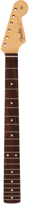 De Fender Neck MIJ Trad 60’s Strat RW is een hoogwaardige gitaarhals die specifiek is ontworpen voor de Fender Made in Japan Hybrid II Stratocaster. Deze hals heeft een bolt-on constructie gemaakt van esdoorn met walnotenhoutstrepen. De hals is afgewerkt met een glanzende urethaanlaag en heeft een palissander toets met witte stip inleg. Met een vingerbordradius van 241 mm (9.5”) en een schaal van 648 mm (25.5”) biedt deze hals zowel speelcomfort als precisie. De breedte van de topkam bedraagt 42 mm (1.650”), wat bijdraagt aan een goede snaarspeling. De hals heeft een “U” profiel en is uitgerust met 21 vintage frets voor een authentieke speelervaring.