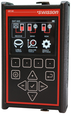De Swisson XMT-500 DMX Tester is een veelzijdige DMX Tester en RDM / Ethernet controller, die diverse functies combineert in één apparaat. Dit apparaat biedt mogelijkheden voor DMX, RDM, Art-Net en sACN signalanalyse, kabeltesten en meer. Het kan Art-Net of sACN kanalen en universums verzenden, evenals DMX-waarden. Daarnaast detecteert en configureert het RDM-capabele apparaten en analyseert het ontvangen DMX-signalen. De XMT-500 beschikt over een kleur IPS TFT-display dat ook in direct zonlicht goed leesbaar is.