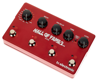 De tc electronic Hall of Fame 2×4 is een effectpedaal met 4 drukgevoelige “Mash” voetschakelaars. Het heeft een nieuwe shimmer reverb en een preset bank voor 8 opgeslagen reverb presets. Het pedaal bevat 10 reverb types en 6 Toneprint slots. Het heeft ook een analoge droge doorgang en diverse bedieningsknoppen. Het pedaal heeft meerdere aansluitingen, waaronder MIDI In en Thru. Het wordt gevoed via een 9 V DC-netvoeding en kan niet op batterijen worden gebruikt. Het pedaal heeft een afmeting van 235 x 145 x 56 mm en weegt 1,3 kg.