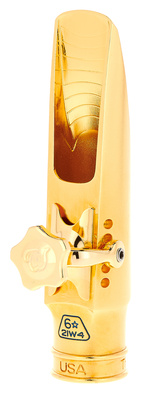 Theo Wanne Gaia IV Tenor 6* Gold; Metallmundstück für Tenorsaxophon; Bahnöffnung: 2,41 mm; vergoldet; klarer und großer Vintage Klang; viel Projektion und Fokus; abgerundete innere Seitenwände; Shark-Gill-Baffle: gebogene Linien beseitigen Lufttaschen, bringt größere Dynamik und volleren Klang; Long-Step-Baffle: Luft fließt schnell und sauber durch das Mundstück, gute Projektion und heller Klang; Large-Stadium-Kammer: große Stadionform, sehr warmer, großer, dichter Klang; inkl. 24K Gold Plated Liberty Blattschraube, Reed Replacer Kapsel und Mundstücktasche aus Leder