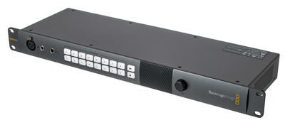 Blackmagic Design ATEM Talkback Converter 4K, 4K Signal Converter / Extender, Provides up to 8 cameras with SDI talkback using embedded audio channels 15 and 16 as found on Blackmagic Studio Cameras and ATEM Camera Converters, Supports 12G-SDI for all SD, HD and Ultra HD formats up to 2160p/60 and offers BNC connectors for each camera as well as an optional fibre jack, Allows the connection of an additional SFP module to extend camera transmission for longer distances, With push-to-talk talk buttons, Supports common aviation headsets with 6.35 mm TRS headphone jack and 5.23 mm TRS microphone jack, Balanced XLR microphone jack on front panel, Integrated speakers, Compatible operating systems: Mac 10.11 El Capitan, Mac 10.12 Sierra or higher / Windows 8.1 and 10, Power supply: 100- 240 V AC input with redundant 12 – 31 V DC input (IEC power cable not included), Power consumption: 60 W, Dimensions: 482 (19″) x 44 (1U) x 160 mm, Weight: 2.3 kg@+*Note:* SFP fibre optic modules are not included in the scope of delivery@+@+*Inputs:*@+@+, Programme input: 1x 10-bit SD/HD/Ultra HD 4K auto-switching programme input from mixer, including tally data with audio embedded in 16 channels., Camera inputs: 8x 10-bit SD/HD/Ultra HD 4K auto-switching outputs with 16 channels of embedded audio, Fibre optic video input: 8 mono-mode SD/HD/Ultra HD 4K auto-switching inputs with LC socket, Fibre audio input: 8 mono-mode fibre camera audio inputs with LC jack (channels 1 and 2 are for camera sound, Channels 15 and 16 are for intercom sound).@+*Outputs:*@+@+, Programme output: 1x 10-bit SD/HD/Ultra HD 4K auto-switching programme output with loop-through for interfacing to another ATEM Talkback Converter 4K type converter., Camera output: 8x 10-bit SD/HD/Ultra HD 4K auto-switching outputs with 16 channels of embedded audio, Fibre optic video output: 8 mono-mode SD/HD/Ultra HD 4K outputs, auto-switching, with LC socket, Fibre-optic audio output: 8 mono-mode fibre outputs with LC socket (channels 1 and 2 are for camera sound, channels 15 and 16 are for intercom sound)