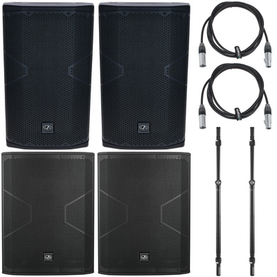 The DAS Audio Altea 412A/718A Power Bundle is suitable for various applications including live music events, DJ setups, and public speaking engagements. The subwoofers and full-range speakers can be used in both indoor and outdoor settings, providing ample sound coverage for audiences of different sizes. The integration of professional microphone cables and mounting solutions makes this bundle compatible with standard audio equipment, catering to sound engineers and audio professionals.