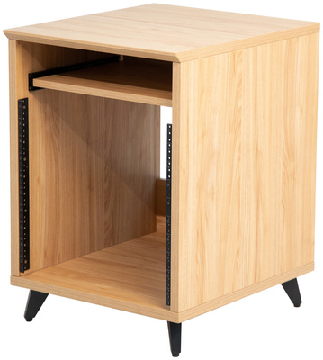 Gator Frameworks Elite 10U Rack MPL, 10U Studio Rack Table, Gator Frameworks Elite Furniture Series, Pull-out shelf above the rack space, Cable aperture at the rear, Levelling feet on base for uneven floor surfaces, Top surface: 610 mm x 535 mm, Shelf footprint: 457 x 360 mm, Height of shelf: 95 mm, Dimensions (W x D x H): 535 x 610 x 762 mm, Weight: 26 kg, Colour: Natural Matte Maple, Incl. 20 rack screws, Matching additional Gator rack screws (10/32 x 3/4″): art. #449210# (not included)