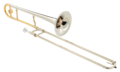 Kühnl & Hoyer Bart van Lier .500″ G Nickel, “Bart van Lier .500” Tenor Trombone, Interchangeable, nickel-plated gold brass bell, Brass body, Nickel-silver slide, Gold lacquered, Bore: 12.7 mm, Bell: 195 mm, Includes silver-plated mouthpiece type “BvL 8E”, Without case, Especially suitable for jazz, pop, salsa or big band, The curved retaining bar on the train stands for a particularly comfortable posture of the instrument