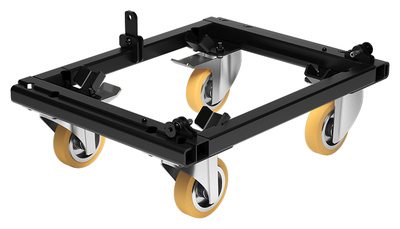 The RCF KRT-WH 6X HDL 6 is a castor board designed to hold up to six RCF HDL 6-A modules. With a maximum load capacity of 69 kg, this castor board ensures secure transportation and storage of audio equipment. It features a locking mechanism on the bottom for stability during movement. The unit is equipped with four castors, each with brakes, to facilitate easy mobility while preventing unwanted movement when stationary. The dimensions of the board are 525 x 400 x 231 mm, and it weighs 11 kg. The sleek black design is complemented by yellow castors for visibility.