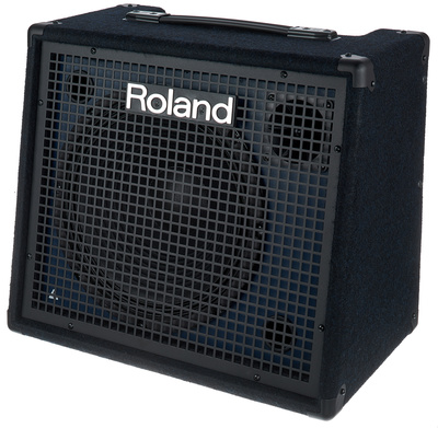 Roland KC-200, Keyboard amplifier, Amplifier power: 100 W, Newly developed 2-way speaker system with 12″ woofer and tweeter, Built-in mixer with 4 line input channels (jack) and master EQ, Dedicated monitor functionality on channel 4 for monitoring click and guide tracks, XLR microphone input, Line outputs: jack, Headphone- and sub output, Robust metal connectors, Dimensions (W x D x H): 480 x 295 x 435 mm, Weight: 15 kg, Optional cover: Art.#464901# (not included)