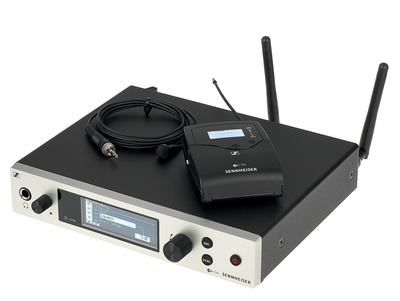 Sennheiser ew 300 G4 ME2 RC GW Band, UHF Wireless System, Includes an SK 300 G4-RC remote control, a condenser ME2 lavalier microphone, and an EM 300-500 G4 9.5″ receiver, Frequency range: GW band (558 – 626 -MHz), Polar pattern: omnidirectional, 88 MHz Switching bandwidth, 20 Channel banks with up to 32 presets each, Up to 32 compatible channels, Network connection for frequency management and control via software WSM (Wireless System Manager), Frquency response: 25 – 18,000 Hz, Frequency transmission via infrared interface, Pocket transmitter with charging contacts for an optional BA 2015 battery (NiMH), Pilot tone, Automatic frequency scan feature locates available frequencies, Integrated EQ, Audio gain: 60 dB, Soundcheck mode, 4-Digit battery indicator on the transmitter and receiver, HDX compander, LCD display with AF / RF level and channel display, Switchable transmission power: 10 / 30 / 50 mW, 2x BNC antenna sockets, XLR male balanced and jack unbalanced, Power supply: 10.5 – 16 V DC, Includes a GA 3 rackmount, NT2 power supply, and 2x AA batteries