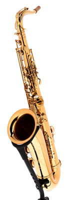 The Thomann Custom Line TSBGG is a tenor saxophone designed for musicians seeking a durable and reliable instrument. It features a gold lacquered body and mechanism, providing a classic aesthetic. The saxophone includes a high f# key and utilizes French M.Chanu padding with plastic resonators, ensuring a robust and balanced tone. This model is suitable for various playing styles and comes with essential accessories including a cleaning swab, strap, and case. Please note that a mouthpiece is not included, and the type of engraving may differ from the pictures.