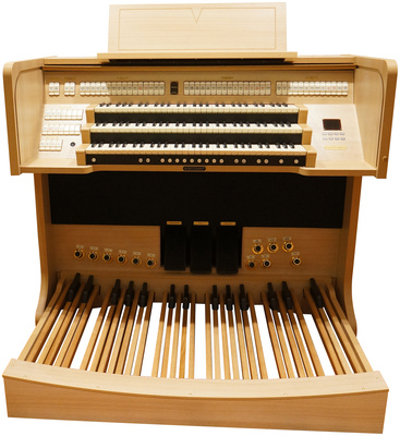 The Viscount Unico CLV 8 Konkav is a sacral organ designed with a light oak laminate finish. It features a total of 50 organ voices and 4 orchestra voices, offering a diverse range of sound options. This model includes 3 manuals, each with 61 keys utilizing a patented pressure point keyboard for responsive playing. The organ is equipped with 4 preset and 4 user sound styles, allowing for customized sound creation. A powerful amplifier configuration and multiple speakers enhance audio performance, making the Viscount Unico CLV 8 Konkav suitable for various musical settings.