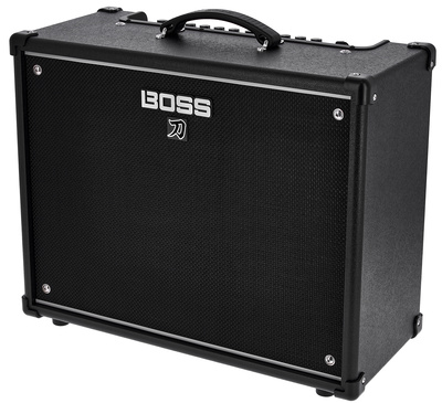 Boss Katana 100 Gen 3, Combo guitare, 4 canaux, Puissance: 100 W, 1 haut-parleurs 12″, 6 types d’amplificateurs et voicings supplémentaires sélectionnables, Extension possible avec un adaptateur Bluetooth disponible séparément pour le streaming audio ou le contrôle par application, Contrôles: Presence, Master, Gain, Volume, Bass, Middle, Treble, Booster, Mod, FX, Delay, Reverb, Commutateurs: Power, Solo, Power Control (Standby, 0,5 W, Half, Max), Cab Resonance (Vintage, Modern, Deep), Amp Type Switch, Variation, Contour, Booster, Mod, FX, Delay, Reverb, Tap, CH1, CH2, CH3, CH4, Panel, Stereo Expand, Effets: Delay, Reverb, Modulation, Boucle d’effets Send & Return, Entrée instrument sur Jack 6,3 mm, Entrée Power Amp sur Jack 6,3 mm, Entrée Aux sur mini Jack stéréo 3,5 mm, Sortie ligne sur Jack 6,3 mm, Sortie casque sur Jack stéréo 6,3 mm, CTL CH1/CH2 Solo sur Jack 6,3 mm, Port USB-C, Emplacement pour adaptateur Bluetooth, Entrée AC, Dimensions (L x P x H): 530 x 248 x 484 mm, Poids: 14,8 kg
