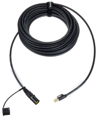 Le Cordial CSE 20 NH 5e PUR est un câble Cat5e S/UTP d’une longueur de 20 mètres. Il est doté d’une fiche RJ45 Hirose à une extrémité et d’une fiche Neutrik NE8MX-B-1 à l’autre. Sa gaine en PUR offre une protection contre les abrasions et les produits chimiques. Les conducteurs en cuivre ont une section de 0,15 mm² (AWG 26/16) et sont disposés en quatre paires torsadées ensemble. Avec un diamètre extérieur de 6,5 mm et une couleur noire, ce câble est conçu pour des connexions réseau fiables et performantes.