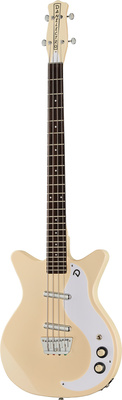 Danelectro 59DC Short Scale Bass Cream, Basse électrique, Eclisses et bloc central en peuplier, Table et fond en isorel, Manche vissé en érable, Touche en pau ferro, Tête « bouteille » 2 + 2, Diapason: 756 mm (29,76″ – Short Scale), 24 frettes, 2 micros simple bobinage Lipstick High Output, 2 réglages de volume/tonalité empilés, Sélecteur 3 positions, Mécaniques style Kluson, Accastillage chromé, Couleur: Crème