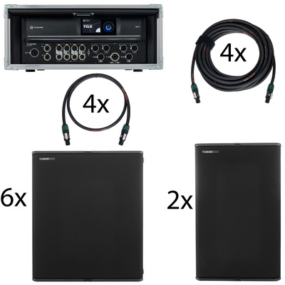 TW AUDiO PA-SYS-TWENTYONE/TGX@+*Offre Bundle comprenant*, TW AUDiO SYSRACK-TGX10@+*Système d’amplificateurs en rack 4 canaux*, Composition du système: Dynacord TGX10, APL7-TGX et Rack4TGX, Puissance: 4x 1250 W sous 8 Ohm, 4x 2500 W sous 4 Ohm, 4x 3000 W sous 2,7 Ohm, DSP 96 kHz entièrement intégré avec technologie FIR-Drive, Intégration Dante et OCA via OMNEO avec options de redondance, Ecran couleur tactile 3,5″ et encodeur rotatif pour un fonctionnement sans logiciel de contrôle à distance, Entrées: 2x AES3, 4x XLR, Sorties: 6x speakON NL4, 1x speakON NL8, Réseau primaire/secondaire: 2 x RJ45, Neutrik powerCON HC, Format: 4U, Dimensions (L x H x P): 600 x 253 x 600 mm, Poids: 34 kg, 2x TW AUDiO T24N-60@+*Enceinte passive Mid-High 2x 12″ haute performance*, Puissance admissible: 1000 Watt AES, 2800 Watt crête, 2 haut-parleurs 12″ avec aimants en néodyme, 1 moteur de compression 1,4″ avec diaphragme 3″, Niveau de pression acoustique max.: 143 dB, Réponse en fréquence: 65 – 18 000 Hz, Angle de dispersion (H x V): 60° x 40°, Impédance: 4 Ohm, 2 connexions sur SpeakON NL4, Boîtier en multiplex de bouleau, 4 poignées pour une manipulation ergonomique, Rails de montage aérien intégrés, Dimensions (L x H x P): 440 x 706 x 440 mm, Poids: 33,1 kg, Couleur: Noir@+*Remarque:* fonctionnement recommandé avec les amplificateurs LAB Gruppen, Powersoft ou Dynacord séries TGX, IPX et L via les préréglages TW AUDiO dédiés, 6x TW AUDiO B21@+*Caisson de basse passif 21″*, Puissance admissible: 1800 Watt AES, 7200 Watt crête, Haut-parleur 21″ avec aimant en néodyme, Niveau de pression acoustique max.: 137 dB, Réponse en fréquence: 27 – 125 Hz, Impédance: 8 Ohm, 2 connexions sur SpeakON NL4, Boîtier en multiplex de bouleau, 8 poignées pour une manipulation ergonomique, 2 admissions M20 pour tube de liaison, Dimensions (L x H x P): 606 x 706 x 800 mm, Poids: 54,5 kg, Couleur: Noir@+*Remarque:* fonctionnement recommandé avec les amplificateurs LAB Gruppen, Powersoft ou Dynacord séries TGX, IPX et L via les préréglages TW AUDiO dédiés, 4x pro snake 14750-15 Speaker Twist 4-pin@+*Câble haut-parleur*, Longueur: 15 m, Section de câble: 4 x 2,5 mm², Speaker Twist – Speaker Twist, Fiches Neutrik 4 broches, Adapté à tous les systèmes de sono, Fabriqué en Allemagne, 4x pro snake 14710-1.5 Speaker Twist 4-pin@+*Câble haut-parleur*, Longueur: 1,5 m, Section de câble: 4 x 2,5 mm², Speaker Twist – Speaker Twist, Fiches Neutrik 4 broches, Adapté à tous les systèmes de sono, Fabriqué en Allemagne